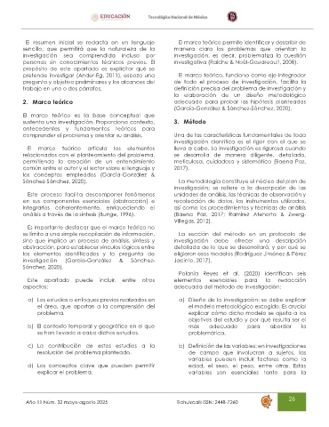 El marco teórico articula los elementos lleva a cabo. La investigación es rigurosa cuando