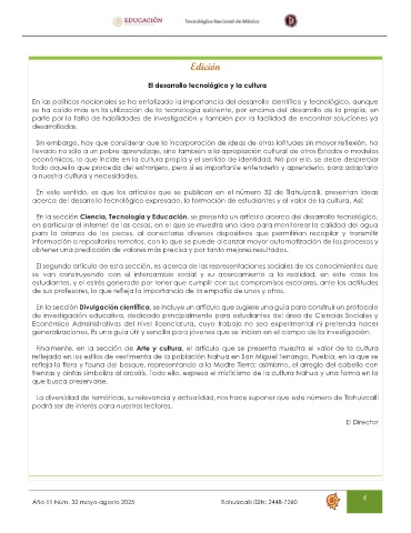 En la sección Ciencia, Tecnología y Educación, se presenta un artículo acerca del desarrollo tecnológico,