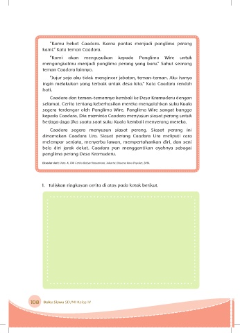 1. Tuliskan ringkasan cerita di atas pada kotak berikut.