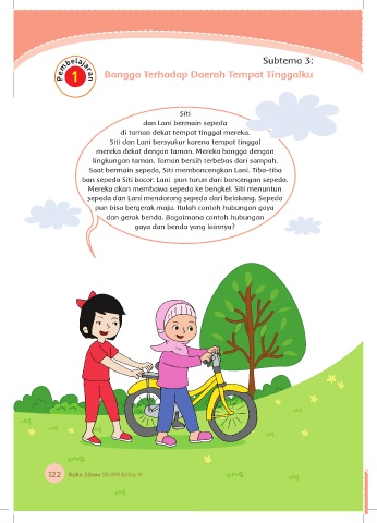 Saat bermain sepeda, Siti memboncengkan Lani. Tiba-tiba
