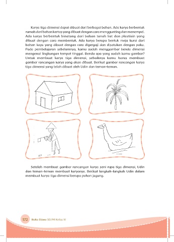 Setelah membuat gambar rancangan karya seni rupa tiga dimensi, Udin