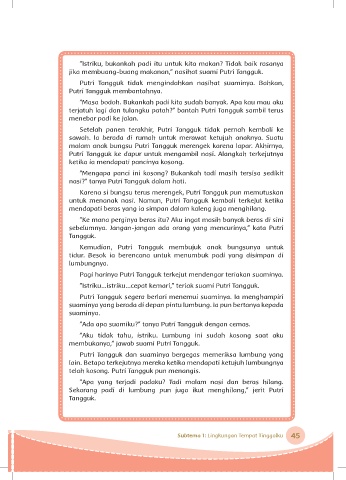 suaminya yang berada di depan pintu lumbung. Ia pun bertanya kepada