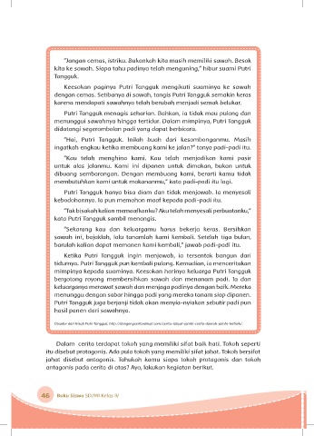 kita ke sawah. Siapa tahu padinya telah menguning,” hibur suami Putri