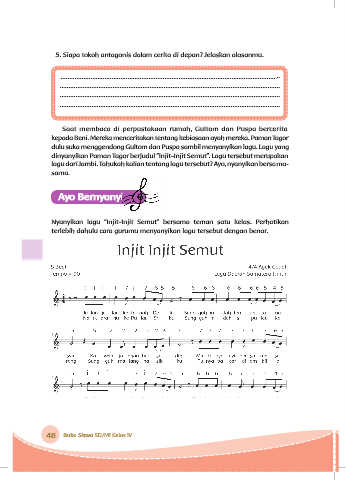 Nyanyikan lagu ”Injit-Injit Semut” bersama teman satu kelas. Perhatikan