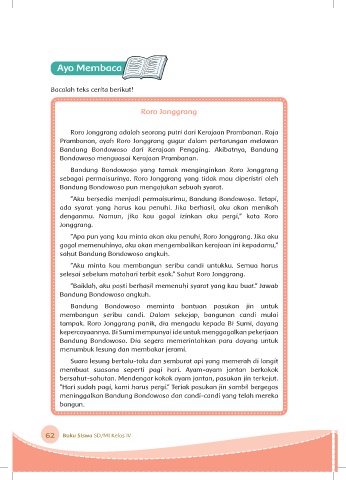 ”Apa pun yang kau minta akan aku penuhi, Roro Jonggrang. Jika aku
