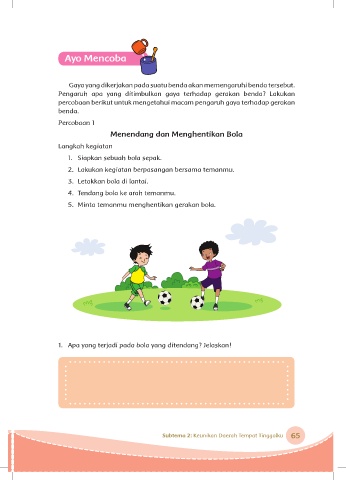 1. Apa yang terjadi pada bola yang ditendang? Jelaskan!