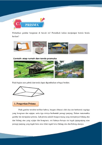 gambar itu merupakan prisma. Jadi prisma adalah bangun ruang yang mempunyai bidang alas