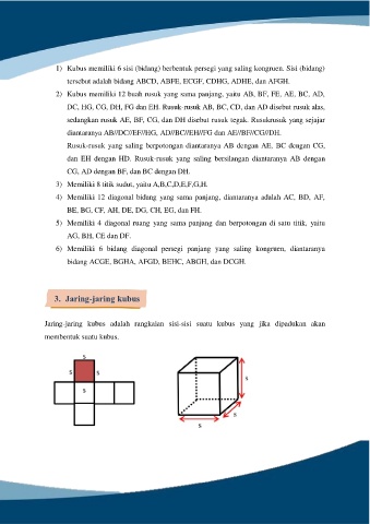 1) Kubus memiliki 6 sisi (bidang) berbentuk persegi yang saling kongruen. Sisi (bidang)