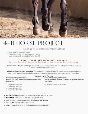 PARKER CO. 4-H MOUNTED HORSE PROJECT MEETINGS