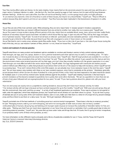 control, because they don’t spend much time on our animals.” Face flies have also been implicated in the transmission of eyeworm in cattle.