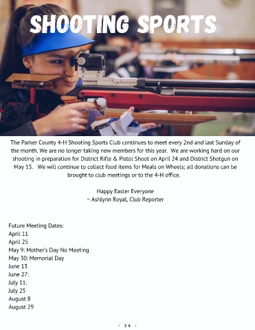 The Parker County 4-H Shooting Sports Club continues to meet every 2nd and last Sunday of