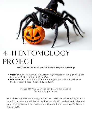 October 16 n d - Parker Co. 4-H Entomology Project Meeting @6PM @ the
