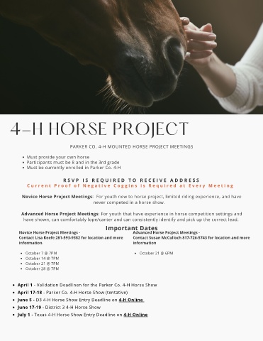 PARKER CO. 4-H MOUNTED HORSE PROJECT MEETINGS
