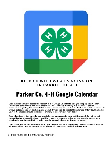 5 PARKER COUNTY 4-H CONNECTION / AUGUST