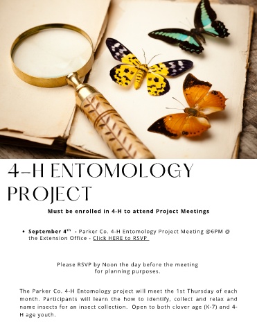 The Parker Co. 4-H Entomology project will meet the 1st Thursday of each