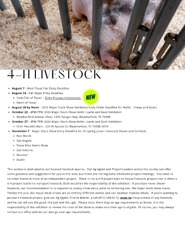 pursue a livestock project, give our Ag Agent, Charlie Martin, a call (817) 598-6172, prior to the purchase of any livestock,