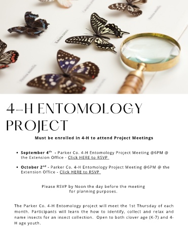 The Parker Co. 4-H Entomology project will meet the 1st Thursday of each