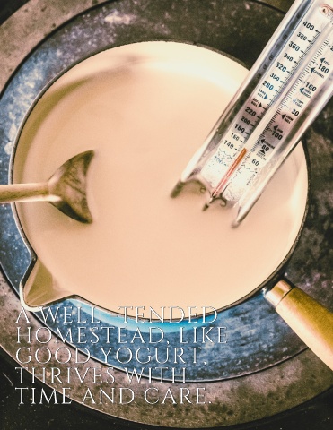 A WELL -TENDED A W E L L - T E N D E D HOMESTEAD, LIKE H O M E S T E A D , L I K E GOOD YOGURT, G O O D Y O G U R T , THRIVES WITH T H R I V E S W I T H TIME AND CARE. T I M E A N D C A R E .
