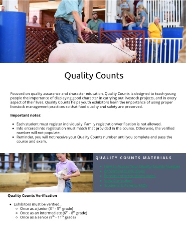 aspect of their lives. Quality Counts helps youth exhibitors learn the importance of using proper