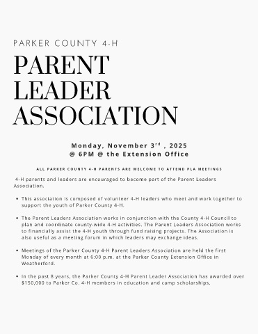 Meetings of the Parker County 4-H Parent Leaders Association are held the first