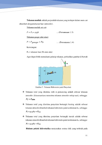 ❖ Tekanan total yang diterima oleh si pemancing adalah sebesar tekanan