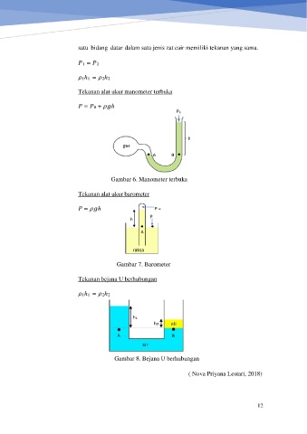 satu bidang datar dalam satu jenis zat cair memiliki tekanan yang sama.
