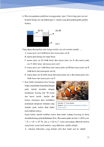 6. Rico mengadakan praktikum menggunakan pipa U berisi tiga jenis zat cair.