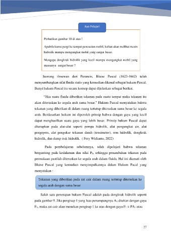 Tekanan yang diberikan pada zat cair dalam ruang tertutup diteruskan ke
