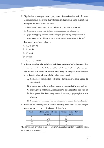 8. Disajikan data tentang volume benda tercelup pada suatu zat cair dengan