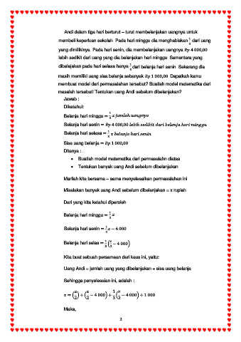 masalah tersebut! Tentukan uang Andi sebelum dibelanjakan?