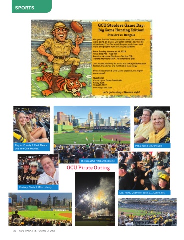 SPORTS Alayna, Pressly & Cash Mead- Pat & Karen McDonough. ows and Cale McAfee. The beautiful Pittsburgh skyline. GCU Pirate Outing Chelsey, Cindy & Mike Leheny. Leo, Anne, Charlotte, Jake &__ Luke Liller. 38 GCU MAGAZINE OCTOBER 2025