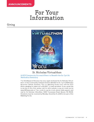 The GCU Board of Directors has once again instituted the St. Nicholas Virtual-