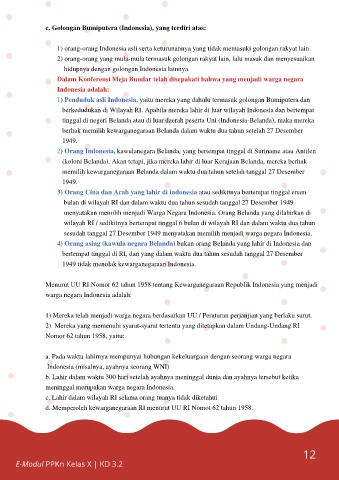 c. Golongan Bumiputera (Indonesia), yang terdiri atas: