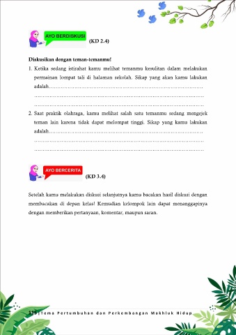 teman lain karena tidak dapat melompat tinggi. Sikap yang kamu lakukan