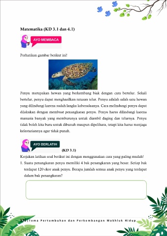 1. Suatu penangkaran penyu memiliki 4 bak penangkaran yang besar. Setiap bak
