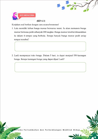 2. Laeli mempunyai toko bunga. Dalam 5 hari, ia dapat menjual 550 karangan