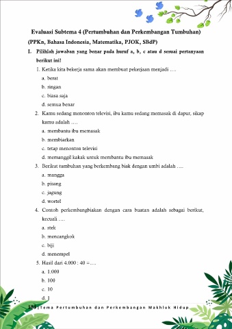 Evaluasi Subtema 4 (Pertumbuhan dan Perkembangan Tumbuhan)