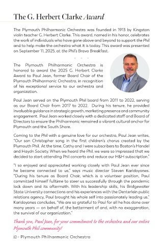 Paul Jean served on the Plymouth Phil board from 2011 to 2022, serving