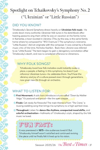 Tchaikovsky’s Second Symphony draws heavily on Ukrainian folk music. He