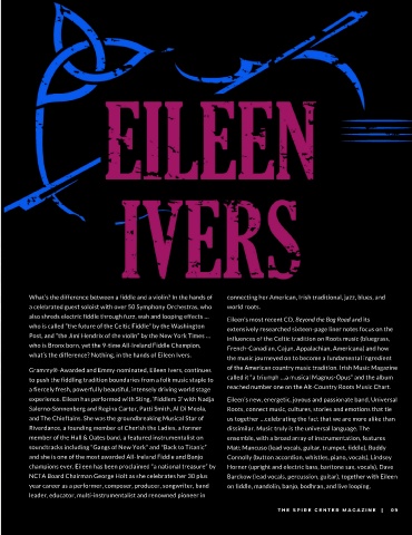 Grammy®-Awarded and Emmy-nominated, Eileen Ivers, continues of the American country music tradition. Irish Music Magazine