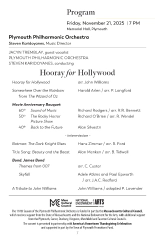 The 110th Season of the Plymouth Philharmonic Orchestra is funded in part by the Massachusetts Cultural Council,