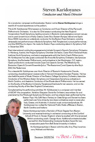 This is Mr. Karidoyanes’ 32nd season as Conductor and Music Director of the Plymouth