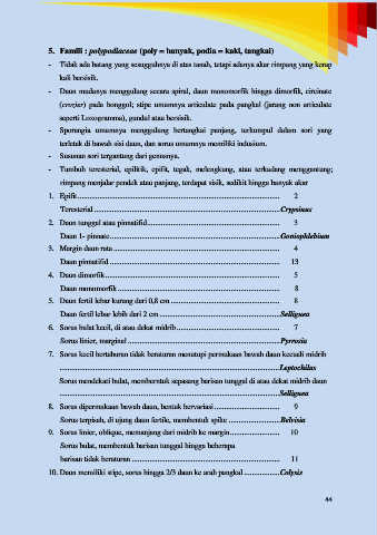 5. Famili : polypodiaceae (poly = banyak, podia = kaki, tangkai)