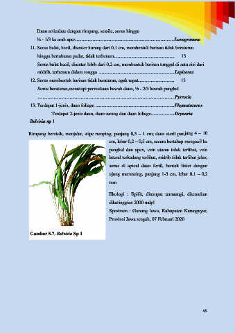 Daun articulate dengan rimpang, sessile, sorus hingga
