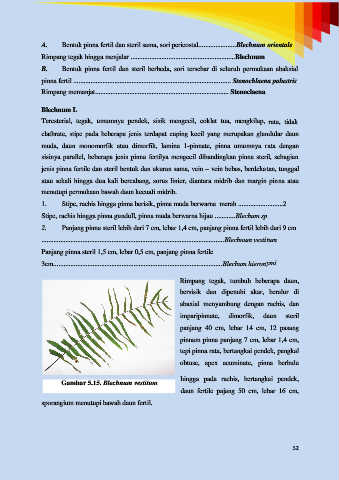 Stipe, rachis hingga pinna gundull, pinna muda berwarna hijau ............Blechum sp