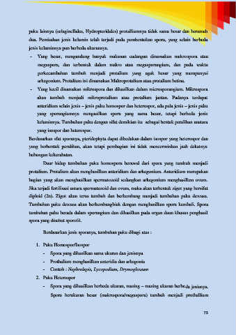 paku lainnya (selaginellales, Hydropteridales) protalliumnya tidak sama besar dan berumah