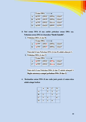 Pada tebel di atas Perbedaan DNA (A dan C) adalah sebanyak 3.