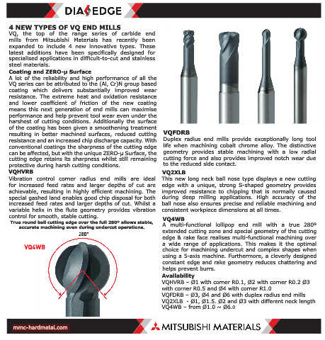 VQFDRB – Ø3, Ø4 and Ø6 with duplex radius end mills