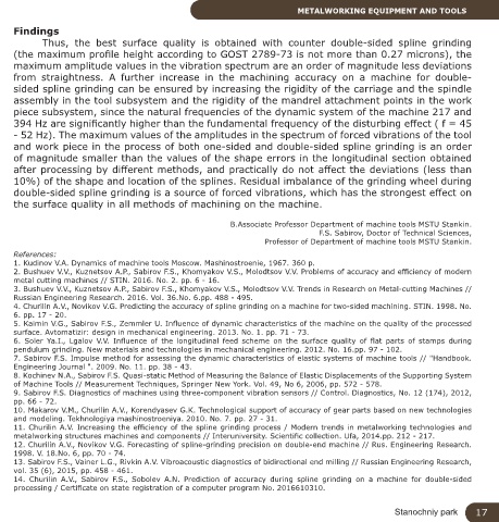 14. Churilin A.V., Sabirov F.S., Sobolev A.N. Prediction of accuracy during spline grinding on a machine for double-sided