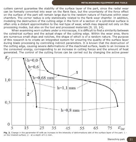 the cutting edge, causing severe deformations of the machined surface, leads to an increase in